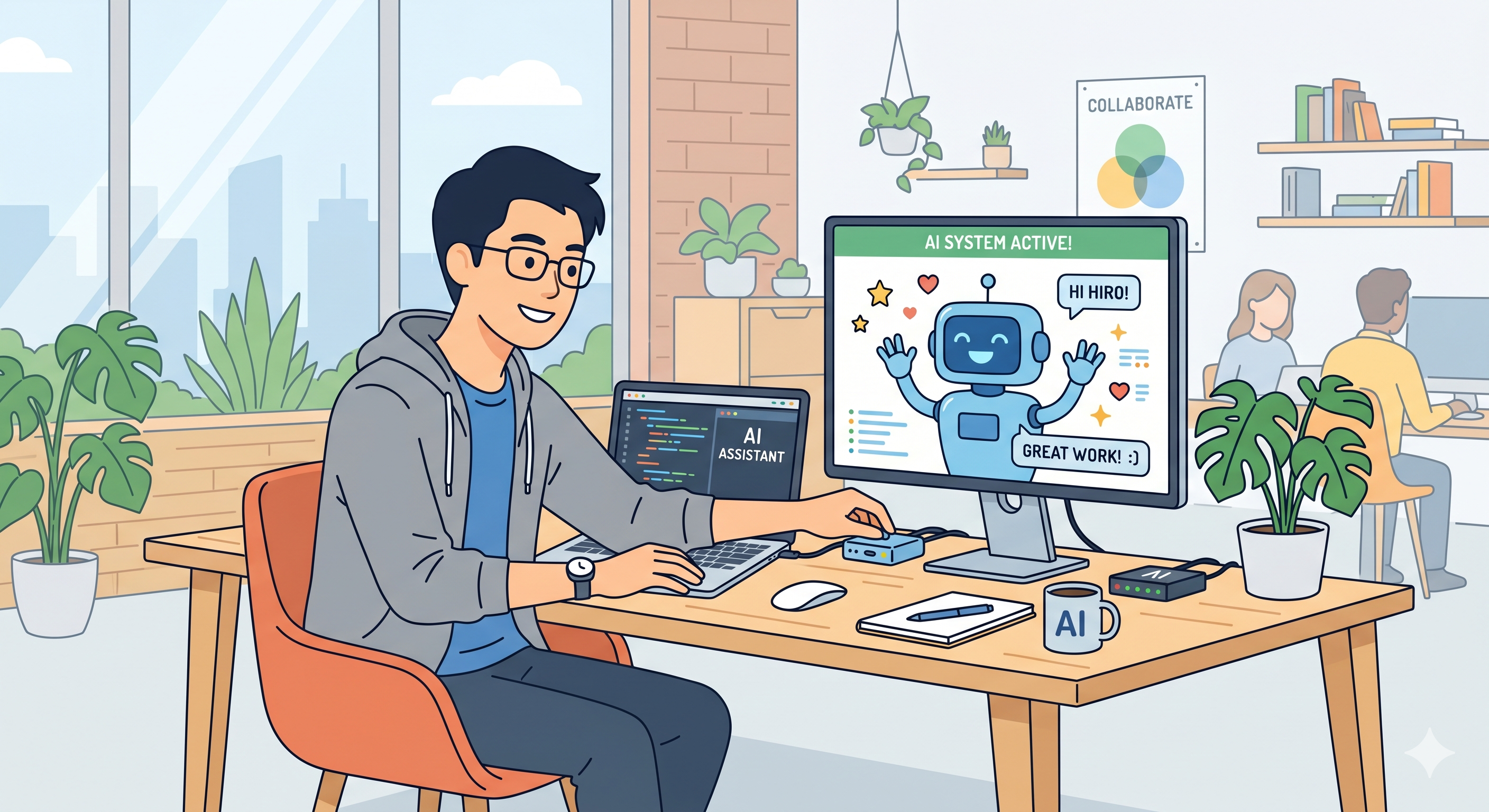 東北タツミ現場発AIプロジェクト vol.11 : AIをスムーズに使うためのパソコン、どれくらいのスペックがあればいい? 2026 4/27 スタッフブログ 2026年4月27日 2026年4月27日 目次AI専用PCを入れてみて、気になったPCスペックについて こんにちは。広報兼、業務改善担当の酒井です。 以前の記事(vol.9)で、弊社がAI専用パソコンを導入した話を書きました。 あわせて読みたい 東北タツミ現場発AIプロジェクト vol.9 : AIという「期待の新人」をどう守る?専用PC導入で決めた3つの鉄則 【我が社の「AI君」が、変な動きをしても大丈夫なように…】 こんにちは。広報兼、業務改善担当の酒井です。 最近、弊社では「AI専用パソコン」を導入しました。 ただ… あのとき「期待の新人くんを配属した感じ」と書きましたが、実際に使っていると、もう一つ気になることが出てきました。 「そもそも、AIを使うためのパソコンって、どれくらいのスペックが必要なんだろう?」 社内でも「古いパソコンだと重くなる?」「何か買い替えた方がいい?」という声が出てきたので、今回は現場目線でまとめてみます。 まず「AIを使う」って、何をしているの? そもそも論から始めます。 ChatGPTやClaude、Geminiといったいわゆる「生成AI」は、基本的にブラウザやアプリ上で動いています。 つまり、計算の重い処理はAI会社のサーバー側でやってくれていて、私たちのパソコンはあくまで「画面を表示して、文字を打ち込む」だけの役割なんです。 これは意外と重要なポイントで、「AIを使う=ハイスペックPCが必要」ではありません。 では、実際に何が影響するのか? 弊社でAI専用PCを使ってきた実感をもとに、影響が大きい順に挙げてみます。 ①メモリ(RAM):一番効く AIを使いながら、Excelを開いて、メールも確認して…という「ながら作業」ではメモリが不足しがちです。 目安として、16GBあれば快適。8GBだと複数タブ+AIで少し重さを感じることがあります。 ②インターネット回線:意外と見落とされがち AIへの質問の送受信はオンラインで行われます。 社内のWi-Fiが混んでいる時間帯は、返答が遅くなることも。PCよりも回線環境の方が影響大きいことも珍しくありません。 ③ CPU:最低限あれば問題なし ここ3〜4年以内のCPUであれば、基本的に問題ありません。古くても、メモリと回線が整っていれば十分快適に使えます。 ④ GPU:通常業務なら不要 「AIを使うならGPUが必要」という話を耳にしたことがある方も多いと思います。半分正解で、半分は状況による話です。 GPUとは、もともとゲームや映像の処理に使われてきたパーツで、「大量の計算を並列でこなす」のが得意です。AIの学習や、自分のPC上でAIモデルを動かす場合には、このGPUが大活躍します。 ただし、私たちが日常業務でやっていることは「ChatGPTやClaudeにブラウザから質問する」ですよね。この場合、重い計算はすべてAI会社のサーバー側でやってくれています。私たちのパソコンは、あくまで「質問を送って、返ってきた答えを表示する」だけ。 イメージとしては、電話で料理の注文をするようなもの。料理を作るのはお店側(AIのサーバー)で、こちらの電話(PC)はそれほど高性能でなくても注文はできます。 GPUが必要になるのは、「自社でAIモデルを一から開発したい」「インターネットにつながっていない環境でAIを動かしたい」といった、かなり専門的なケース。 製造業の現場で日常業務にAIを活用するぶんには、まず関係ない話と思って大丈夫です。 現場的まとめ:「まず試してみる」で大丈夫 正直なところ、今手元にあるパソコンで一度試してみるのが一番です。 ブラウザでChatGPTやClaudeを開いて、実際に使ってみて「重いな」と感じたら、そこで初めてスペックを検討する流れで十分だと思います。 弊社がAI専用PCを選んだのも、「どうせ毎日使うなら、快適な環境を整えた方が続けやすい」という理由でした。必須ではなく、あくまで「続けるための投資」という感覚です。 次回もまた、現場で試してみた話を書いていきます。「こんなこと試してほしい」というリクエストがあれば、ぜひお気軽に! スタッフブログ AIプロジェクト
